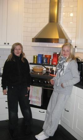 Malins kompis Frida sov här inatt. Dom små brudarna fick för sig och trodde att dom skulle få baka när klockan är tjugo i 10 på kvällen. Blev inget av med det så då kokade dom mackisar istället.