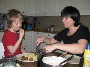 När vi slutade jobba åkte vi hem till Milla och Wilmer. Vi fick lunch där, det var så gott. Vitlökspasta och kräftstjärtar, barnen åt köttbullar.