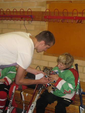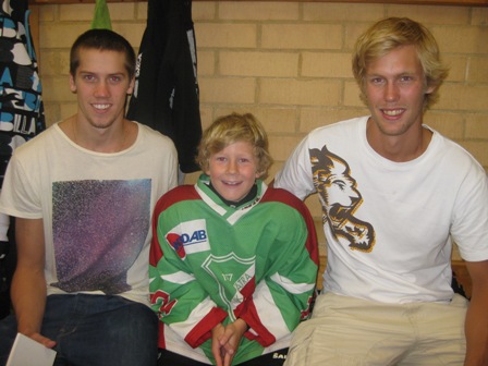 Markström, Lindbäck och Mads Hansen fick skriva autografer på både hjälm, klubbor och papper.