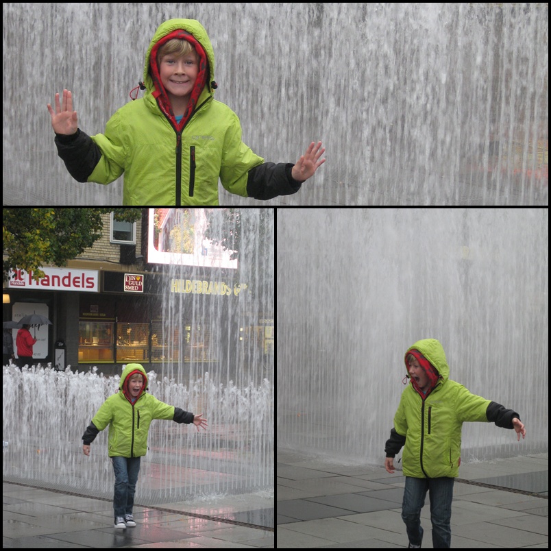 Nog för att det har regnat idag men inte så här mycket, det nya ”vattenspelet” på torget var faktiskt fint