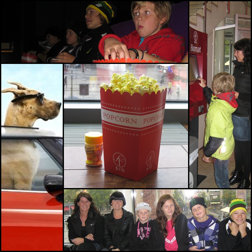 Både Milla och jag är utan karlar i helgen. Regnet bara öser ner så vi bestämde oss för att gå på bio – Marmaduke med barnen.