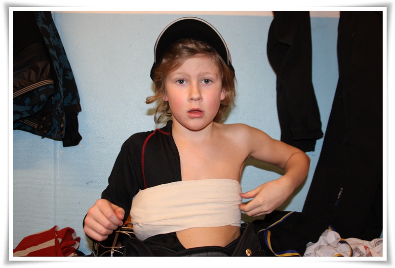 Första matchen mot Säter vanns med 2-1 och Edvin storspelade i mål. Match nr 2 spelades mot Mora. Anton var målvakt men en bit in i andra perioden gjorde han illa sig. Anton är inte den som känner efter så mycket och jag blev mycket förvånad när han till slut kliver av planen och går in i omklädningsrummet. Edvin fick raskt byta om till målvaktutrustning och forsätta matchen som slutade 2-2. Anton blev undersökt av Leksands läkare.