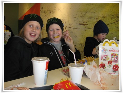 Strax före 8 slår Tex ner arslet i soffan och byter kanal till Canal + och tror att han ska få se hockey. Han blev helt nerröstad. Vi kan bara se canal + i vardagsrummet så han försökte verkligen få upp 4 personer i sängen så han kunde sitta i soffan själv. Majoriteten vann, här rubbar vi inga rutiner 😛