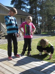 Killarna åt glass och nån liten glassbit ramlade på altanen och smälte fort i solen.