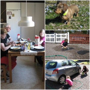 Anton hjälpte mig att tvätta bilen, den blev så ren och fin. Vi fick god påsklunch och sen fika i solen.