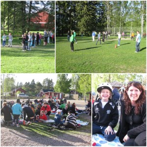 I ett något blåsigt med soligt väder var det brännbollskväll med Antons klass.