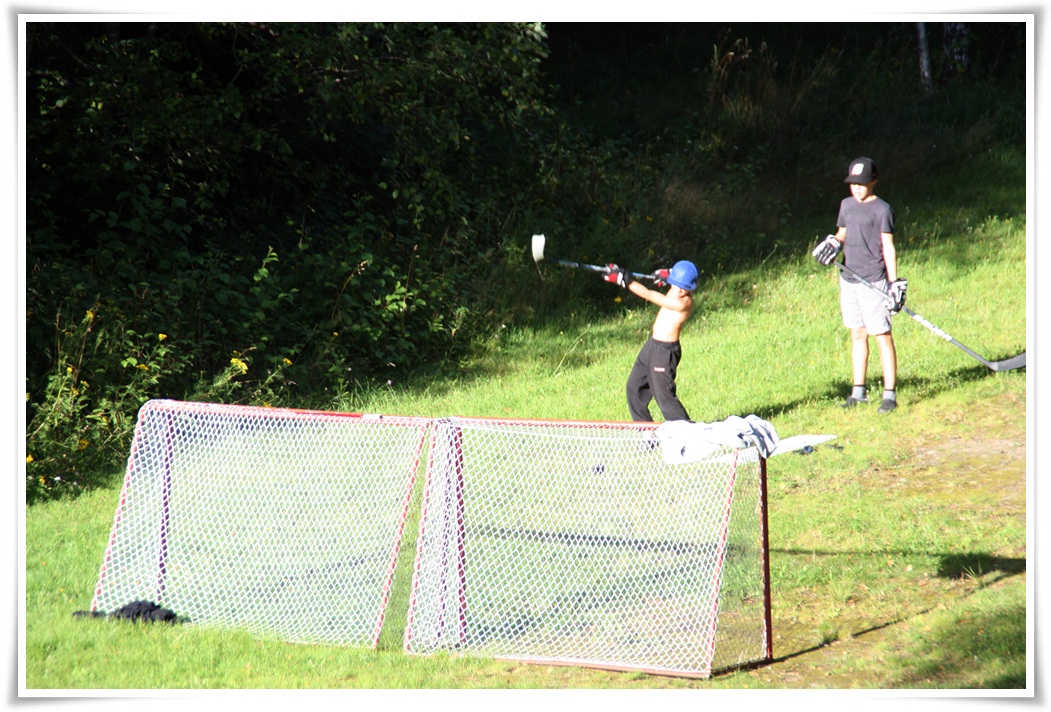 Idag var det avslutning för veckans Goalie Camp med Skills Competition. Det var tävlingar på isen i 5 moment som avslutades med ”elefanthockey” – elever mot ledare. Elefanthockey spelas med all målvaktsutrustning på och målvaktsklubbor. Regler tror jag inte existerar men det är jättekul att titta på.
