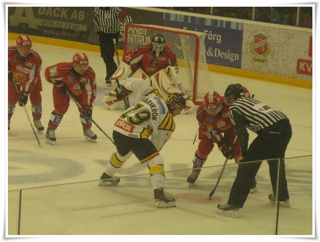 Igår åkte vi till Uppsala för att se Almtuna möta Brynäs. Antons ena hockeytränare, Magnus spelar med Almtuna så vi passade på att se både honom och Brynäs. Vi var 12 stycken i ”fancluben” – Malin, jag, Tex, Anton, Per, Camilla, Edvin, Elsa, Chrille, Wilmer, Alfons och Erik.