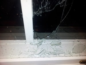 När jag är på väg in slår jag ett getöga mot köksfönstret och ser att rutan är trasig.