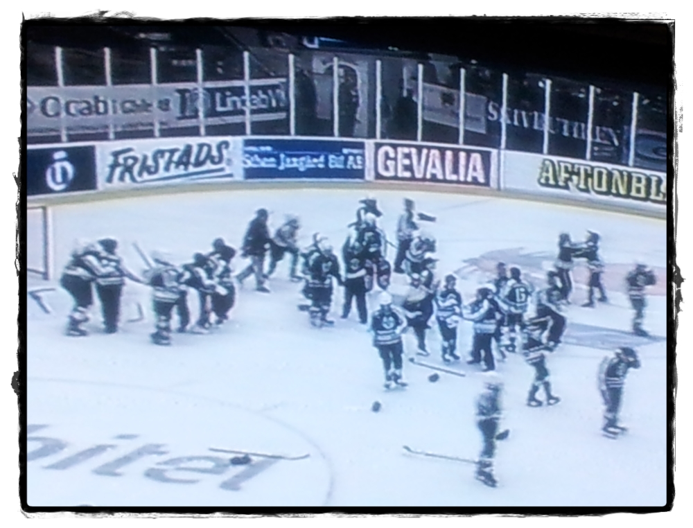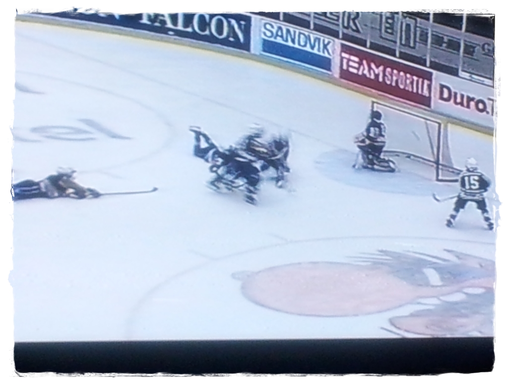 På eftermiddan åt Marcus, Evve och Alex mat hos oss. Vi såg Brynäsmatchen och fick sedan för oss att titta på gammal VHS film från typ 1998-1999 då Marcus och Alex spelade DM-final mot Hofors. Så klart funkade inte vår gamla video men som tur var hade bästa grannen Petra en att låna ut.
