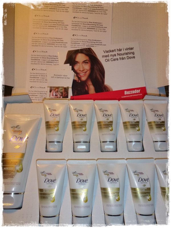 Jag har blivit antagen till en kampanj genom Buzzador där jag har fått chansen att testa ett nytt insentivbalsam från Dove, nämligen Dove Nourishing Oil Care Conditioner. Det ger tre gånger mer näring än vanligt balsam och innehåller en inpackning som gör även torrt och frissigt hår mjukt och glansigt. Balsamet tränger snabbt in i håret utan att göra det fett. Slipp statiskt hår!