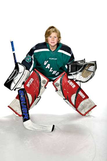 Igår hann vi med 2 hockeymatcher på kort tid. Den första på NickBack mot HÅIK/Strömsbro där Anton spelade ute. En bra match som slutade 4-3 till Valbo. Matchen var färdigspelad kl 12 och nästa match mot Brynäs började kl 13 på Brynäsvallen så det blev snabba ryck. Anton åt korv och jag snörade av skridskor och tog av benskydd. I match nr 2 skulle han nämligen stå i mål. Det är inte lite skydd för en målvakt kan jag säga. Ett under att dom överhuvudtaget kan röra sig.