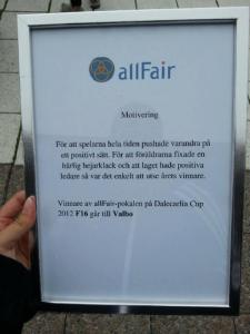 Dom vann även Allfair priset för F-16. En otroligt fin motivering och man kan inte annat än att känna sig stolt.