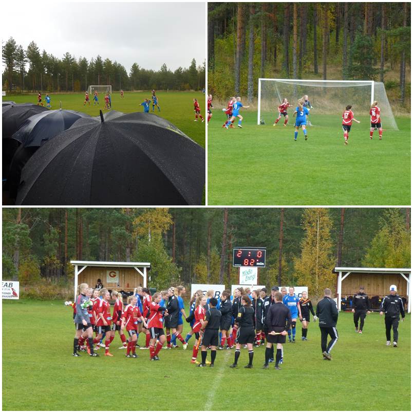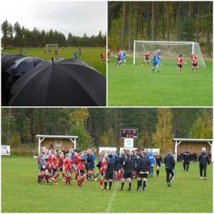 Precis när matchen startade började regnet strila. Det var blött och halkigt men i halvlek ledde Valbo med 1-0. Matchen slutade 2-0 efter att Johanna gjort mål på straff. Imorgon spelar Gustafs – QBik och då vet vi om tjejerna går vidare eller inte.