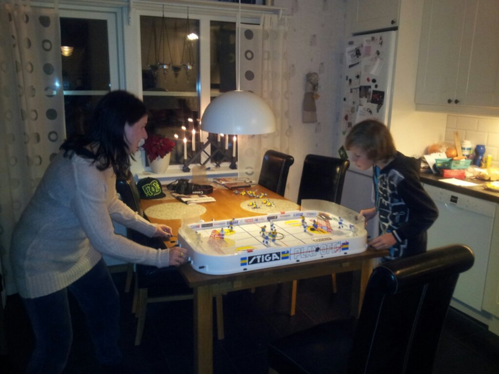 Sonen är sjuk, ont i halsen och har SÅ tråkigt på dagarna. Hockeyspelet har i alla fall roat honom en stund.