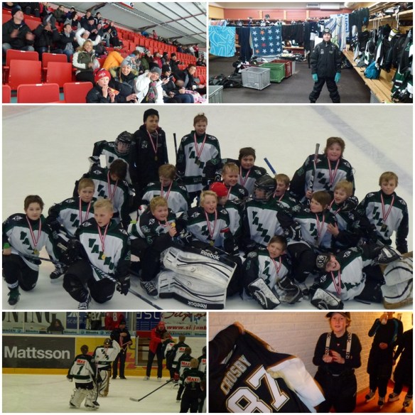Killarna fick spela match om 5:e – 6:e pris mot Alingsås och vann matchen. Själv drog jag in högvinsten i lotteri och kammade hem en NHL-tröja. Jag blev överlycklig, inte för att jag tänker använda tröjan men det var så kul att vinna och Anton är nöjd som fick den.