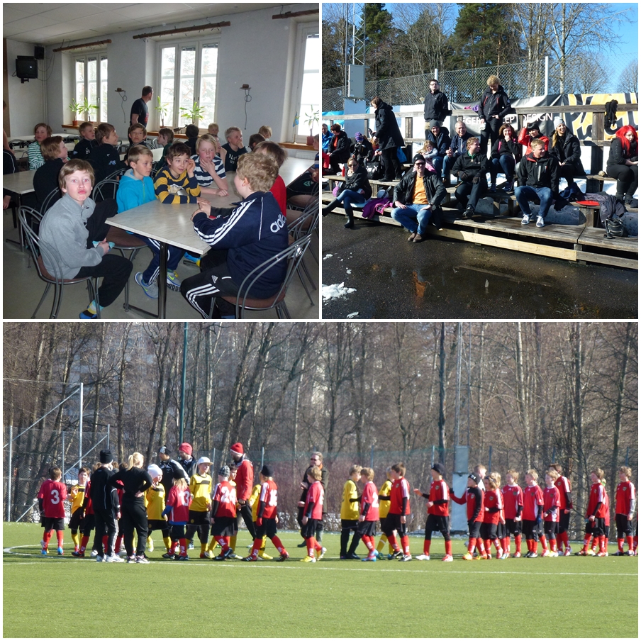 Idag var det en helt annan dag. Solsken och blå himmel och till och med lite värme i luften. Passande nog hade killarna träningsmatch i fotboll mot Hagaström som Haga vann med 2-0. Vi får vara glada att det finns konstgräsplaner……