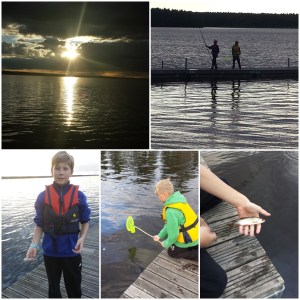 På kvällen gick vi ner till bryggan alla 4 och fiskade/håvade. Massor av småfisk nappade.