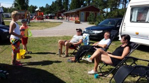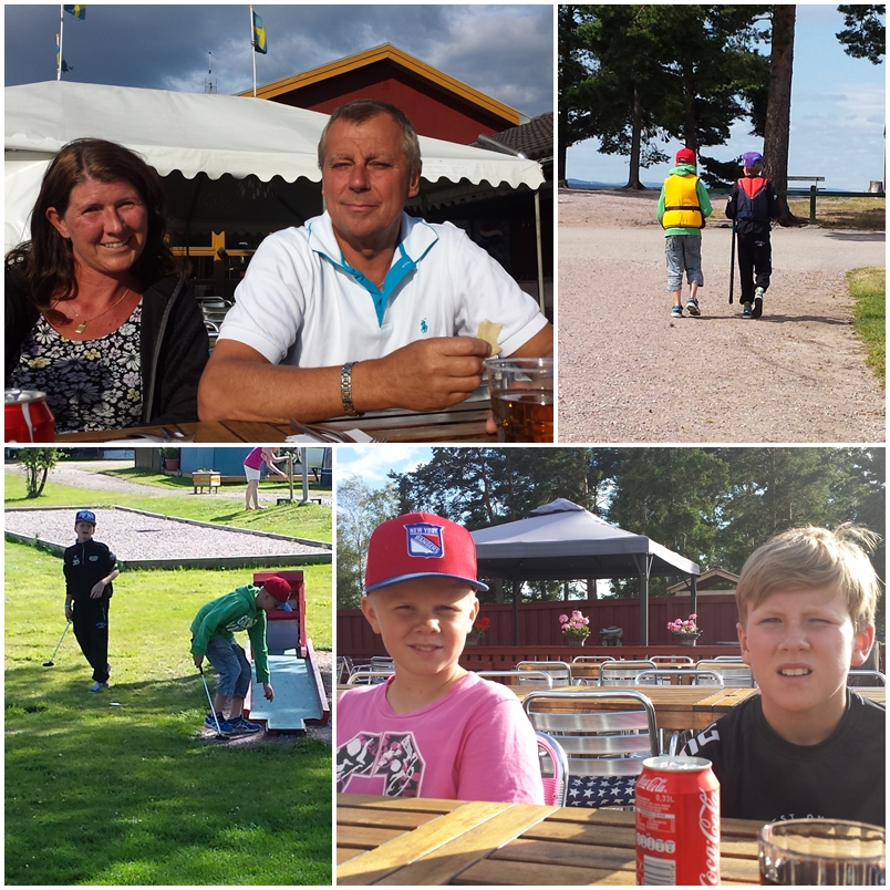 Jättefin camping. Killarna badade, fiskade och spelade golf.