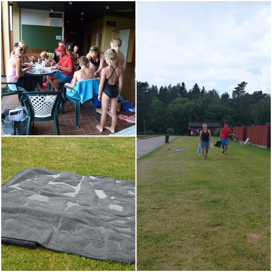 Rätt som det var small det och poolen stängdes av. Vi tog våra grejor och gick in och åt/fikade med förhoppning om att det snart skulle sluta.