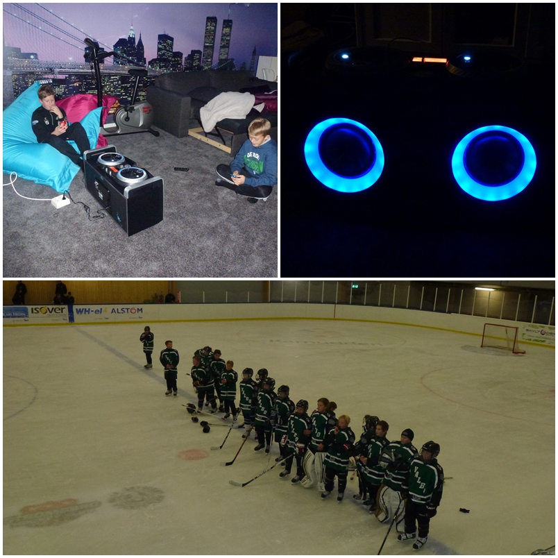 Igår fick Anton och Adam följa med till MediaMarkt och köpa en ny stereo till hockeylaget. Ögonen tindrade på båda två och med ett leende på läpparna pekade dom ut stereon dom önskade, stereon med mest och bäst bas.