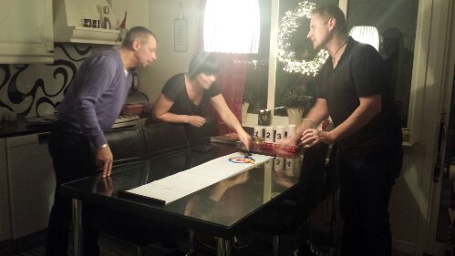 Vi åkte hem till Thysells och blev bjuden på mat. Idag blev det inget kortspel, det blev curlingmatch. Hårt spel, blev nästan svettig, många diskussioner om vem som skulle ha poäng och framför allt – MÅNGA skratt!