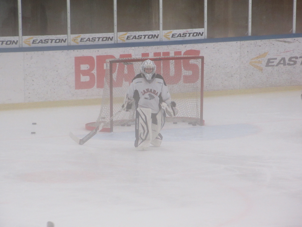 Anton försvinner nästan med sin vita Team Canada tröja.