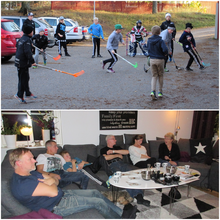 Hockeyträning kl. 12 därefter planerade dom in en bandymatch på vår parkering. Tror dom var 13 killar 😀