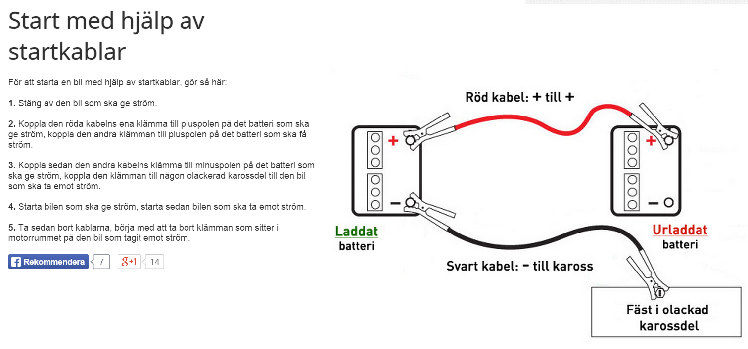 PS. Vi hade startkablar i förrådet och nu vet jag det till en annan gång.