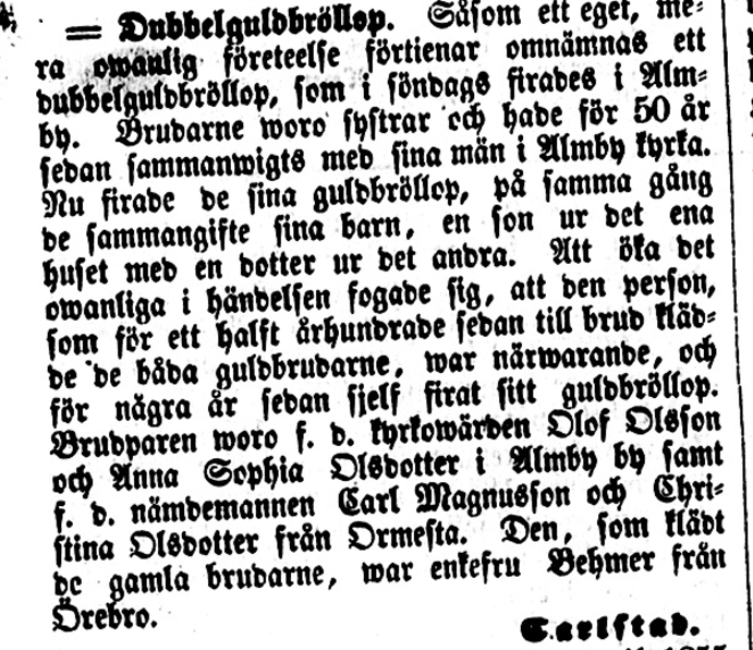 Jag googlade dubbelbröllop och fick inte mer än 2 träffar. Mamma och pappas och ett från 1858.