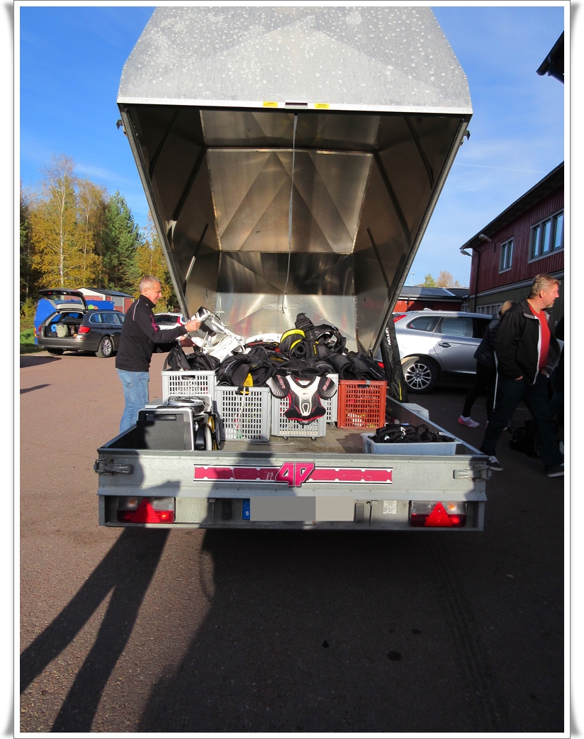 Nu är släpkärran färdigpackad och vi är på väg hem. Ett stopp på Donken i Falun står på tur.