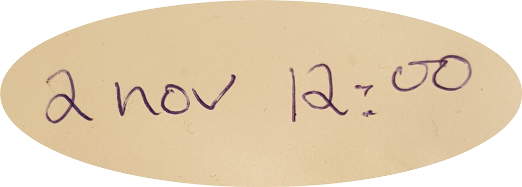 Har haft en lapp legat i köket i flera veckor. Det enda som står är 2 nov 12:00 och jag har flera gånger undrat vad jag ska göra då?