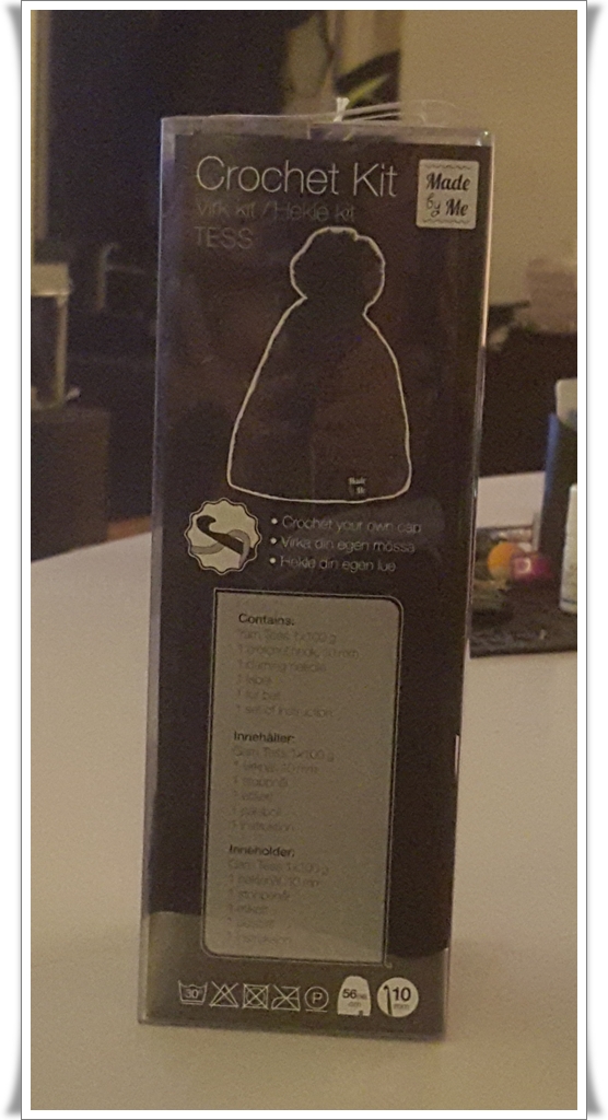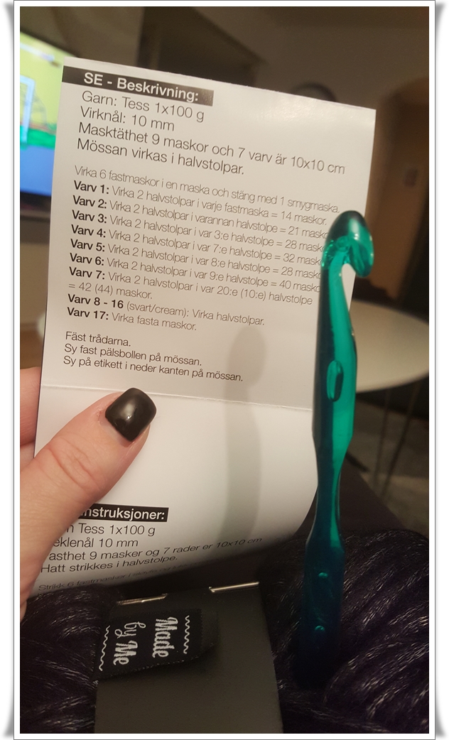 När vi var i Mora köpte vi en liten händig förpackning med allt som behövs för att virka sin egen mössa.