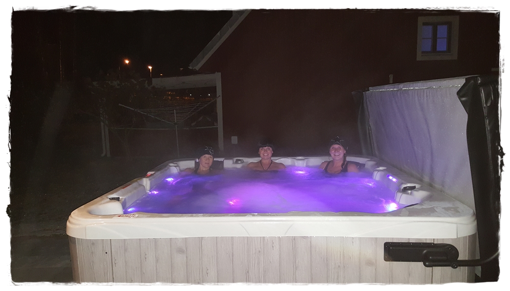Anton åkte till ishallen men Malin och jag fick god mat på Vallrundan. Malin åkte vidare till Alex, Kristin och Love. Jag, Milla och Maria hoppade ner i plurret. Så skönt! Vi surrade om allt och ingenting och efter 2 timmar såg vi ut som russin 🙂