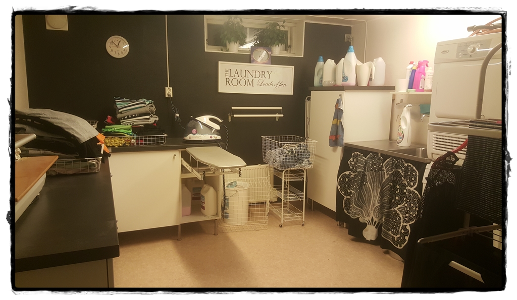 Det finns för- och nackdelar med att ha en stor tvättstuga och fördelen med en stor är att man kan låta allt vara länge innan man behöver ta reda på det, mycket plats att fylla. Nackdelen däremot är att det tar en satans tid att ta reda på allt.