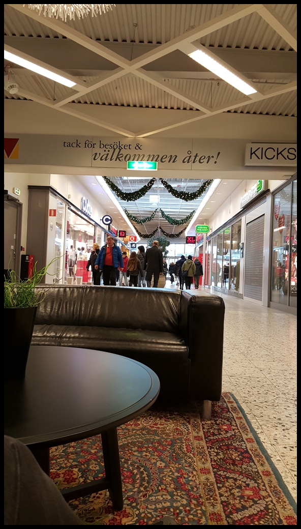 Jag gjorde det och vi åkte dit tillsammans. Urk vad folk, både Malin och jag tyckte det var jobbigt. Jag satte mig ner en stund i godan ro medan Malin gick i några affärer till.