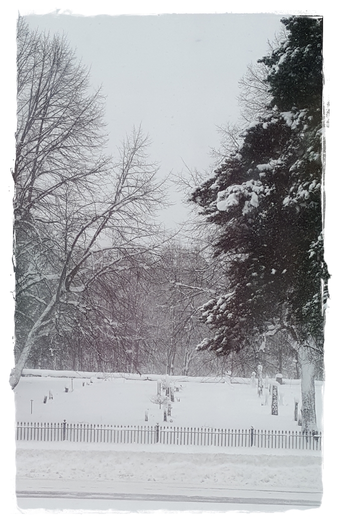 Dagens vinterbild – från mitt lunchrum ut mot kyrkogården och Boulognern.