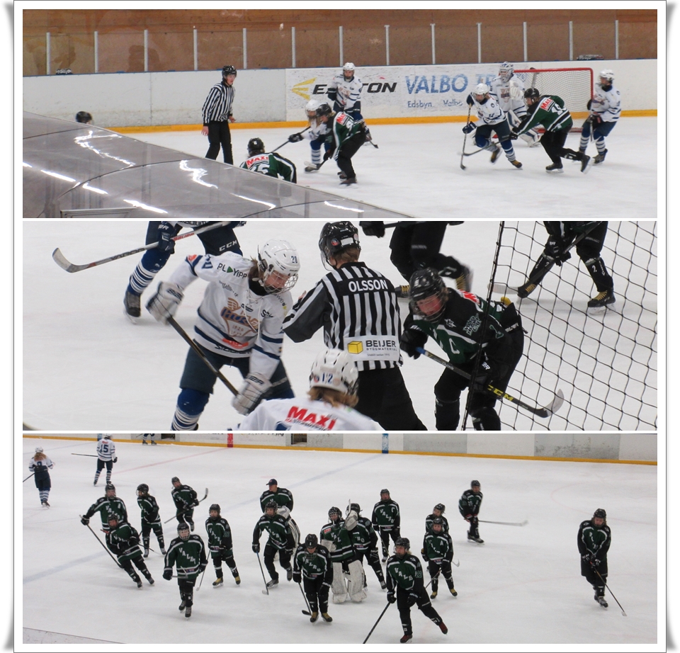 Det blev många mål åt båda håll och med typ 1 minut kvar att spela leder Valbo med 4-3. Vi får en utvisning, Huge tar ut målvakten och med 26 sek kvar av matchen gör dom 4-4. Pust! Jättejobbigt!