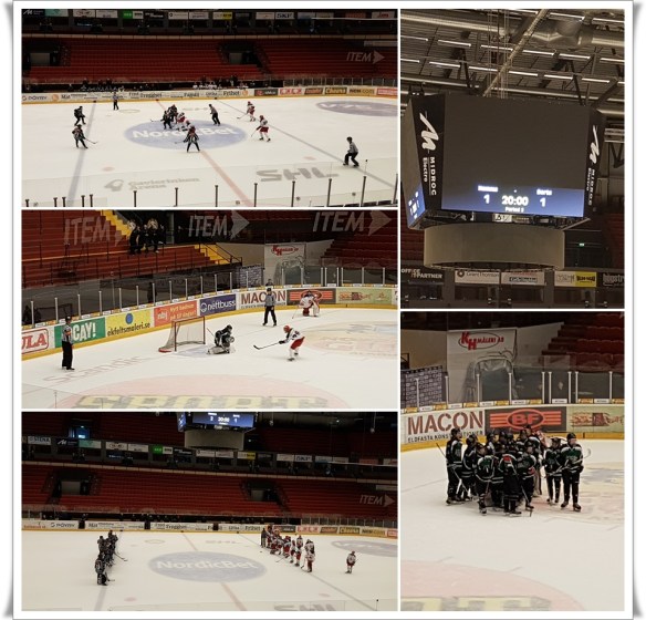 Tro det eller ej men när bronsmatchen skulle spelas fick vi flytta in i A-hallen. Almtuna stod för motståndet och efter 2 perioder var resultatet oavgjort 1-1. Det ska ju ändå avgöras och här skippade man förlängning och gick direkt på straffar. Fattar bara inte varför dom inte bara kan göra mål under ordinarie matchtid 😜