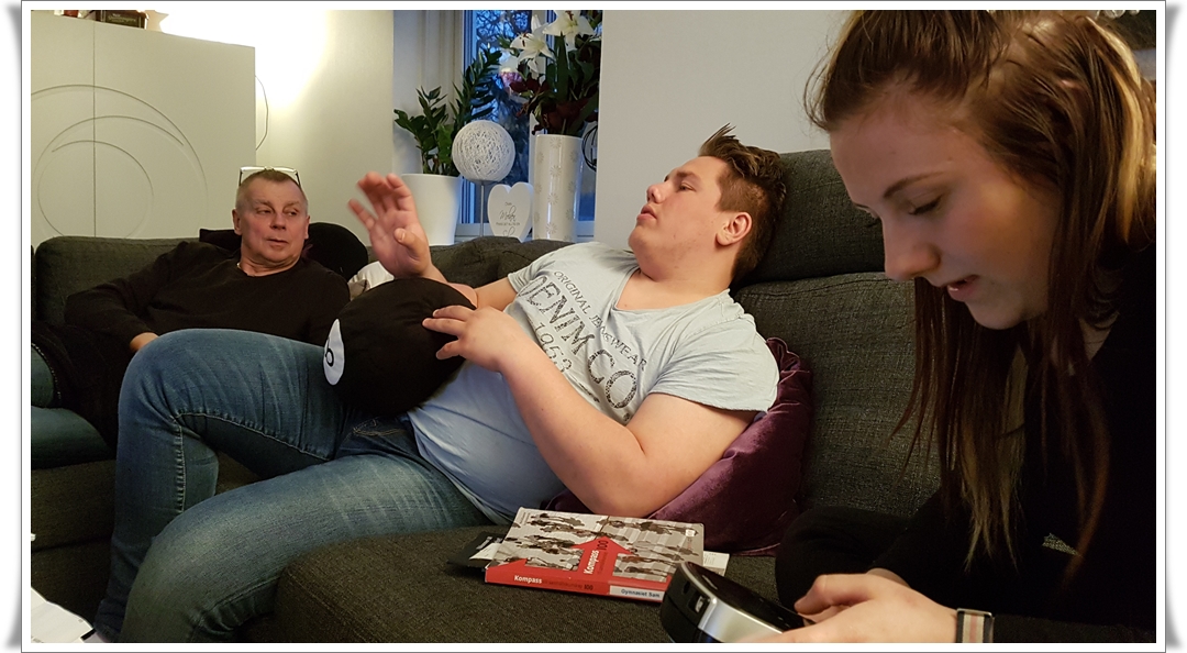 Malin & Tobbe kom hem och åt tacos. Vi tittade på film från Antons idrottslektion när han skulle göra gymnastiska övningar. Vi bara tjöt av skratt, så jäkla roligt 😂