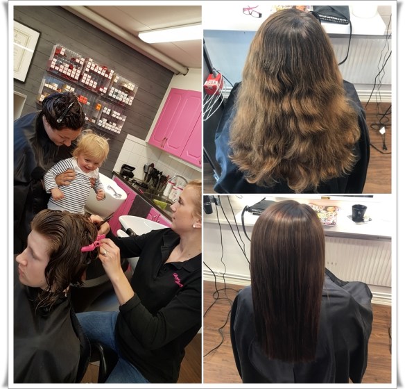 Idag hade vi planering på hög nivå. Tex skjutsa Anton på träning sen hämta Milly på Salongen medan jag fick håret färgat. När mitt hår torkade fick Malin färg i håret och Tex hämtade Anton efter träningen och kom med honom och Milly. Medan Malin hade färg i håret klipptes Anton 😊