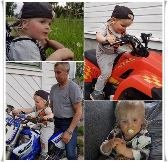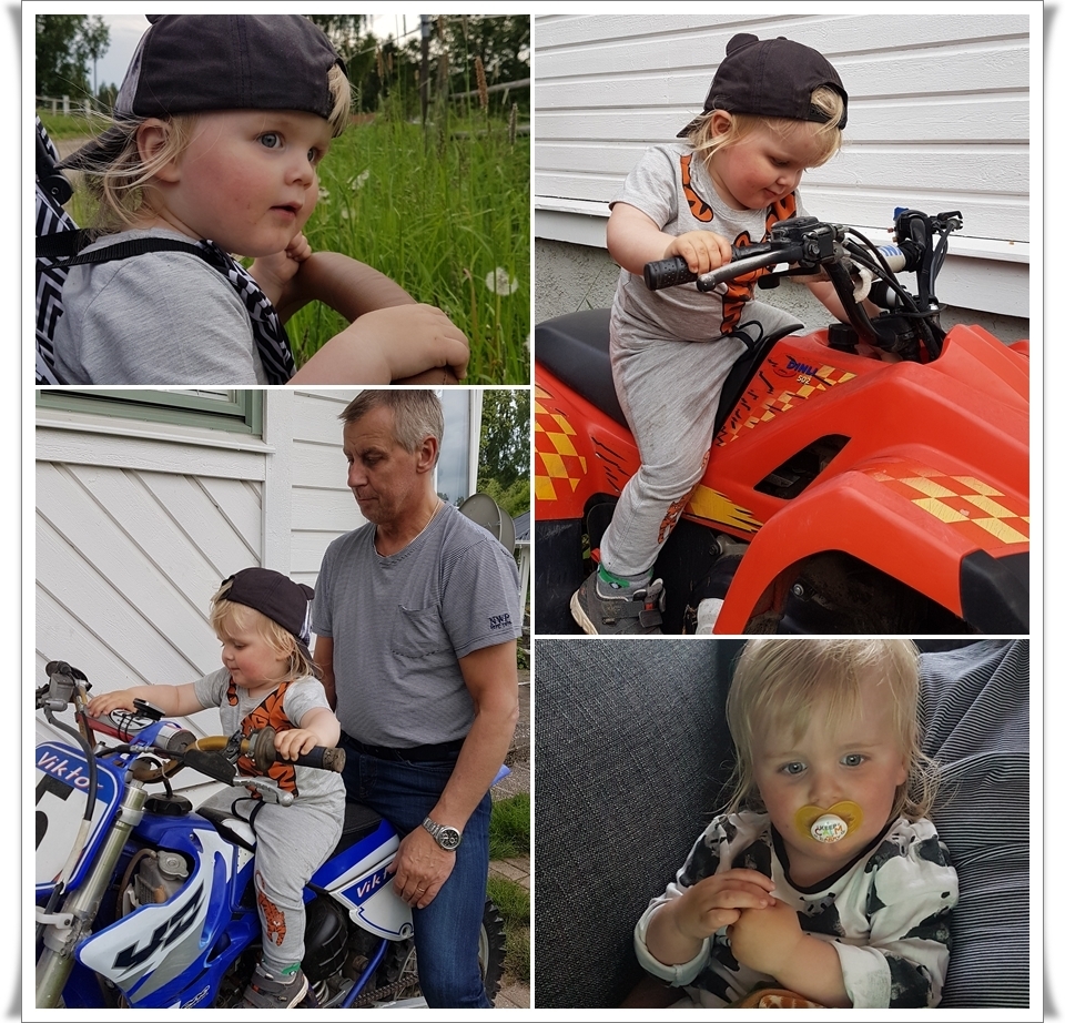 På kvällen blev det riktigt varmt och skönt, vi tog en promenad och skulle titta på hästarna och dom var ju intressanta men Love är kille. Bilar, lastbilar, crossar, allt som brummar är ju lite intressantare 😊