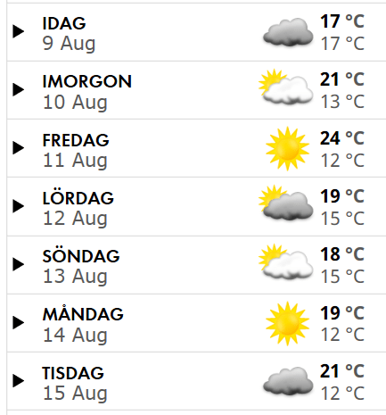 Nu är det dags för några dagar ledigt igen tors – mån och vädret ser helt OK ut 👌