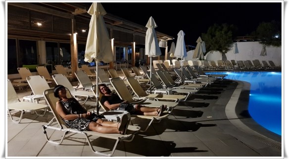 Eftersom solsängarna på stranden var så osköna måste vi provligga solsängarna vid poolen. Så mycket skönare, en sån blir det imorgon 🌞