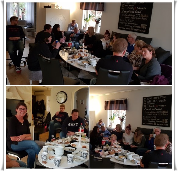 Hem och svepte ihop en kladdkaka innan alla kom och fikade. Vi är många nu, idag var vi 16 stycken (17 med Svante) och vi saknade Evelina.