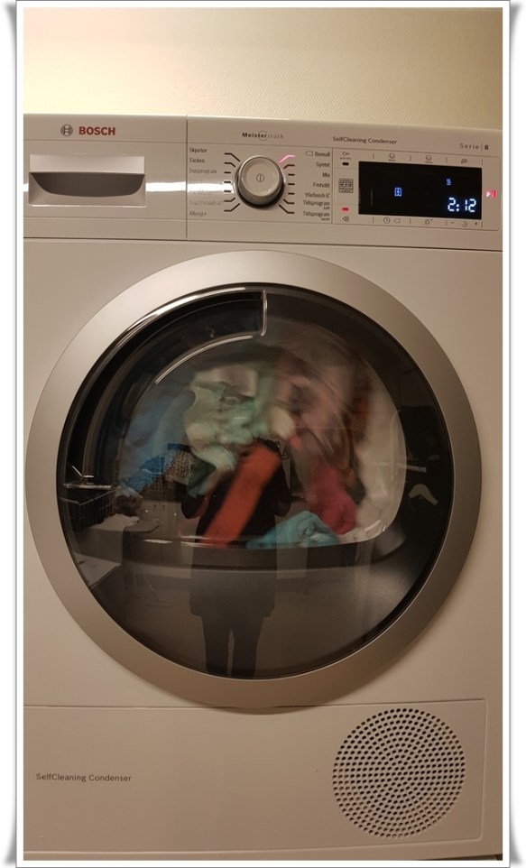 Den snurrar så tyst så man kan knappt tro den är igång. Nu tvättar jag och tumlar som aldrig förr 😋