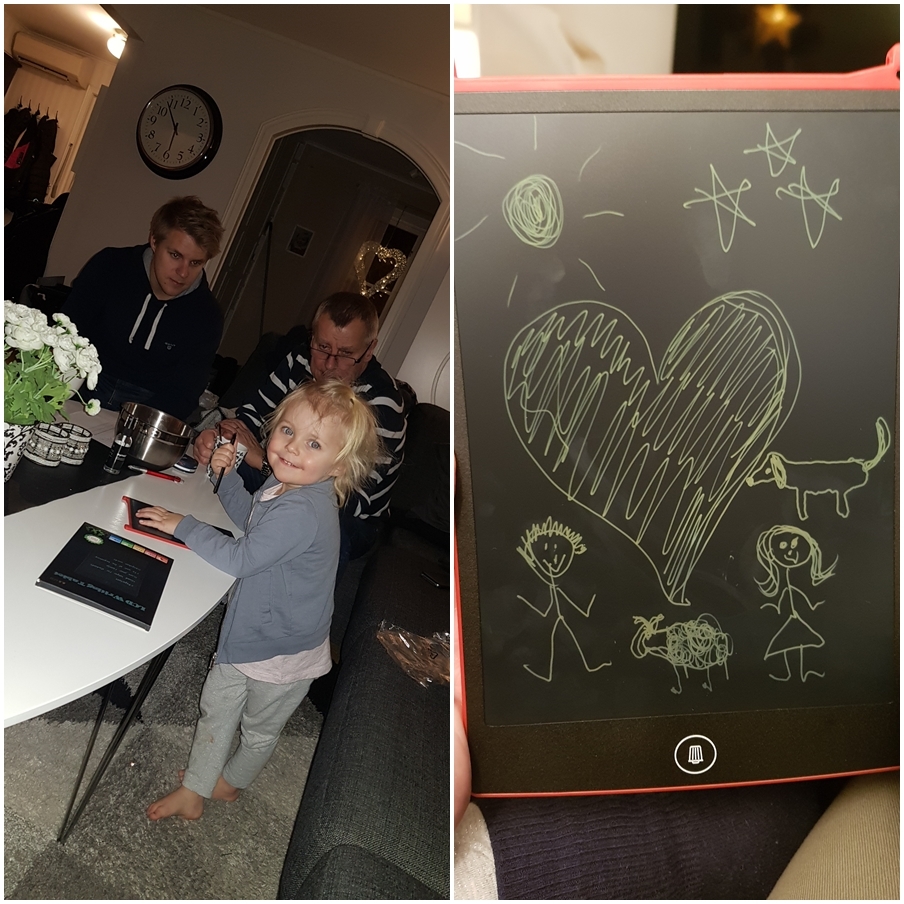 Men innan dess hade vi Milly på besök då Marcus skulle spela hockeymatch och Evelina jobbade. Vi ritade, eller Milly sa vad jag skulle rita och kråkade ner det hon sa. Kan inte säga att jag hade högt betyg i Bild 🙃 lika kass förr som nu.