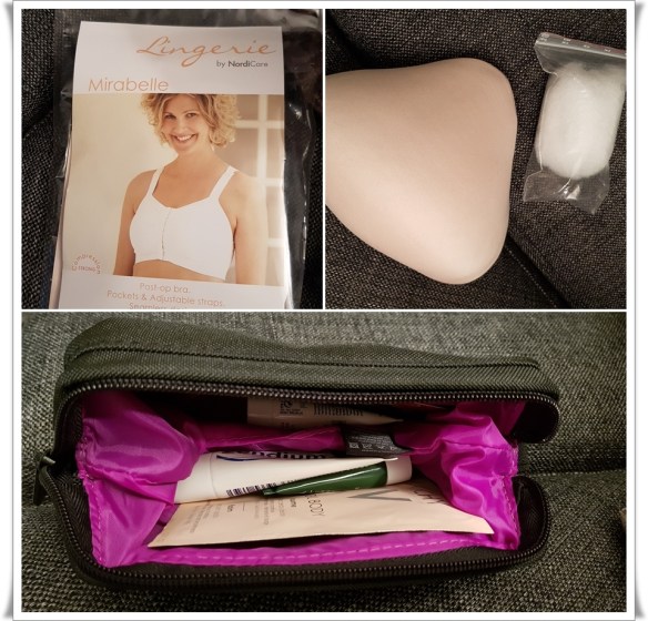 Fick med mig en liten goodiebag med en BH och en skumgummitutt. Till tutten medföljde en liten påse med extra skumgummi så jag kan fylla på ifall den känns för liten. Fick även en liten necessär med lite smått och gott i.