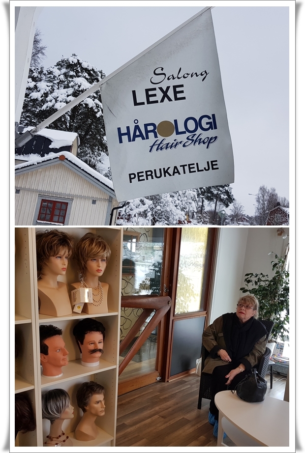 Så blev det min tur och perukmakaren Lena visade in mig i ett rum och tittade lite och kände på mitt hår. Så gick hon och hämtade en peruk som jag fick prova. Lite svårt att få den att sitta still på allt mitt hår och efter en stund hade jag fått till benan så som jag brukar ha den. Det kändes jättebra, över all förväntan 👍