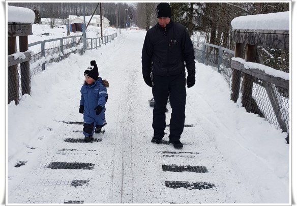 Vi tog med boben ifall nån inte skulle orka gå hela vägen. Det blev Love som drog farfar 😍